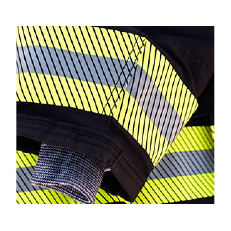 Está diseñado para mejorar la visibilidad de el usuario en condiciones de poca luz, especialmente en la noche, cuando está iluminado por una fuente de luz como faros de un automóvil. La superficie reflectiva está compuesta por lentes retrorreflectivos centrados integralmente en un color de fondo fluorescente, unido a un calor activado.